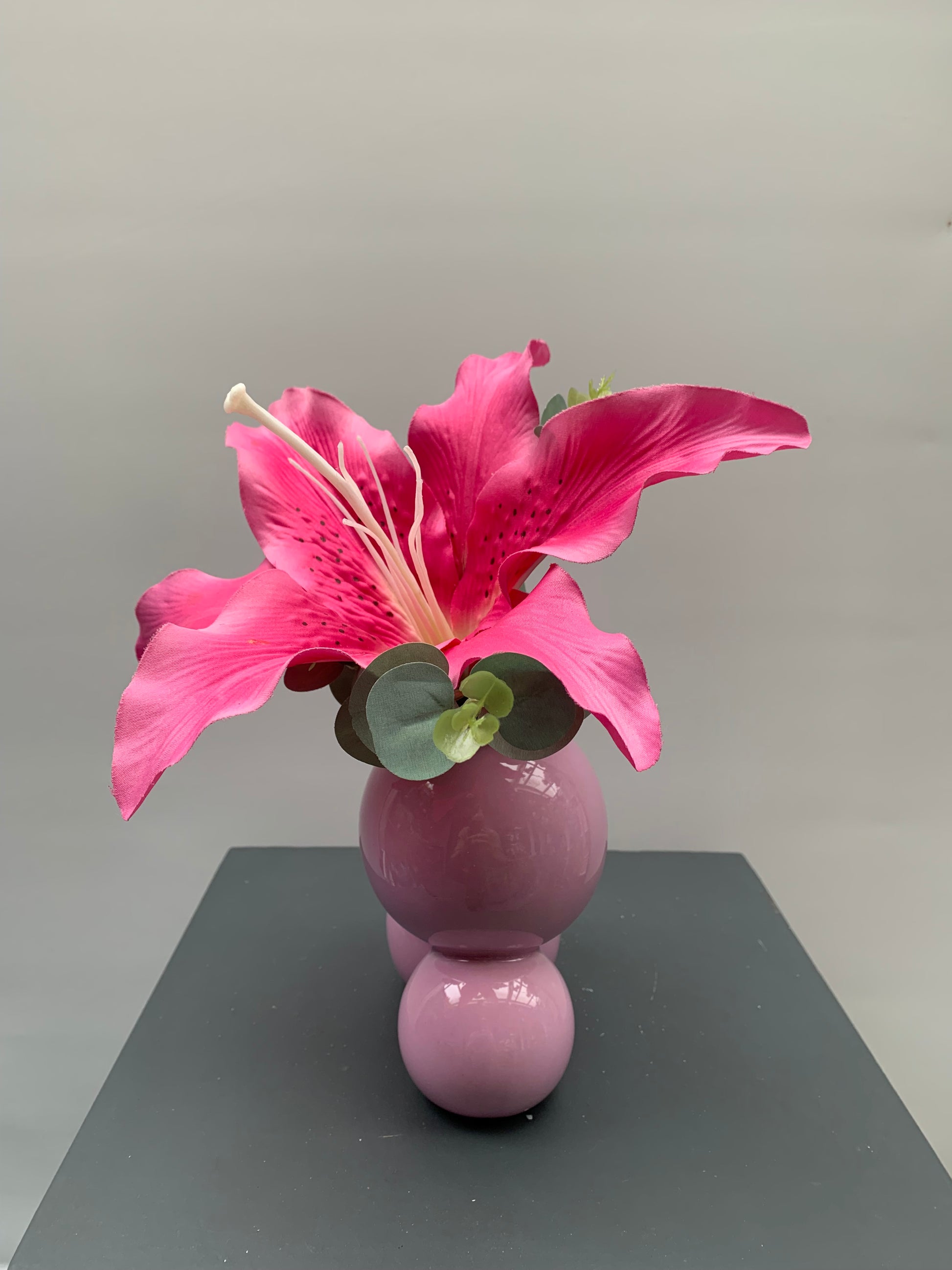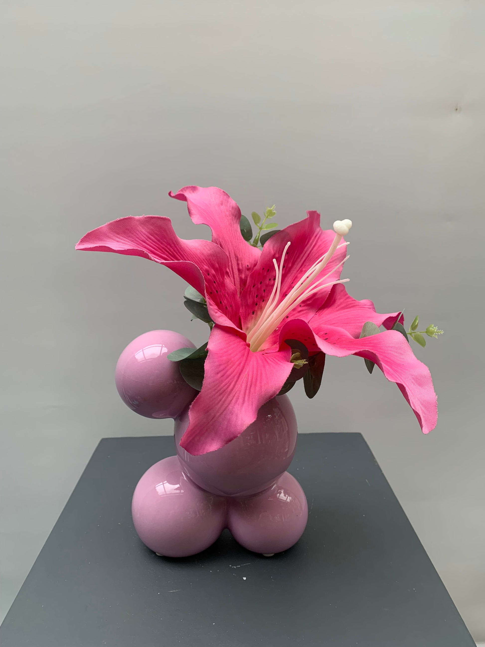 Met een sierlijke grote lelie bloem erin , een klein kunstwerkje